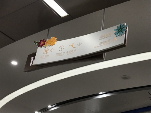 常州明道標識表示,這種大型的商業購物中心少不了導向標識,其主要是為了實現受眾對抽象信息的具象了解與識別。信息是整個系統中的關鍵,利用導向標識這一媒介將相關的信息傳達給受眾,為受眾帶來工作和生活的便利。新時代萬彩購物中心也是將這一方面做的極其完美,具體完成了哪些方面的導向標識我們來看看下面的詳細介紹。