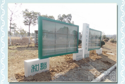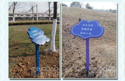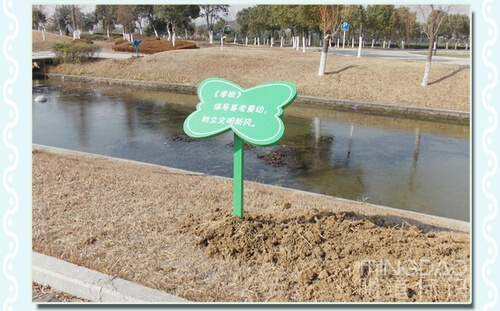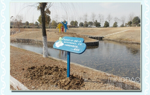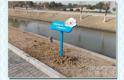 宣傳雕塑、宣傳欄、指示牌、草坪宣傳標識牌等。明道標識通過對標識系統及標識牌的設計,實現了在公園的生態學效應的基礎上著重宣傳人口文化的思想主題,做到了自然景觀與人文景觀的結合與創新,使人口文化公園成為一個特色的主題性公園。