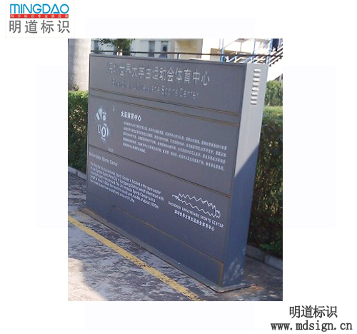 材料工藝:以不銹鋼板烤漆的居多,其大致工藝為:不銹鋼板造型,汽車烤漆,底紋絲網印刷,文字內容反光膜粘貼,整體防紫外線處理。