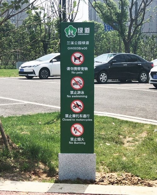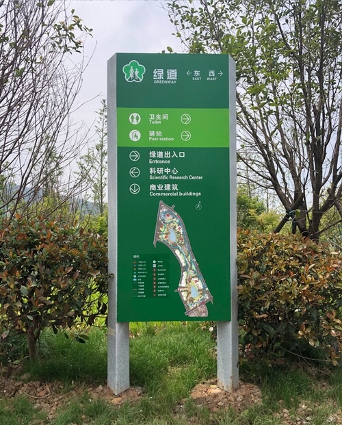 南京新晉“網紅”公園——蘭溪公園位于南京浦口,是高新區內集生態、教育、運動、休閑、藝術、文化為一體的城市綜合性中央公園,總占地面積約1200畝,總投資8.8億元。這里花海景觀、跌水瀑布、親水棧道、文創藝廊一應俱全,是“大手筆”打造周邊居民休閑游憩的新地標。蘭溪公園由A、B、C、D四個區構成,每個區的功能定位不一樣從北到南依次為:生態教育公園、創意運動公園、藝術休閑公園、都會文化公園。作為蘭溪公園必不可少的組成部分,蘭溪公園導視系統承擔著重要的導覽、指示、介紹、提醒、警示、美化、環保等多重作用。這套公園導視系統由明道標識承接制作,得益于導視系統的完善和清晰,如今,公園里、廣場上,到處都是市民早起鍛煉、夜晚賞景的身影,熱鬧非凡。