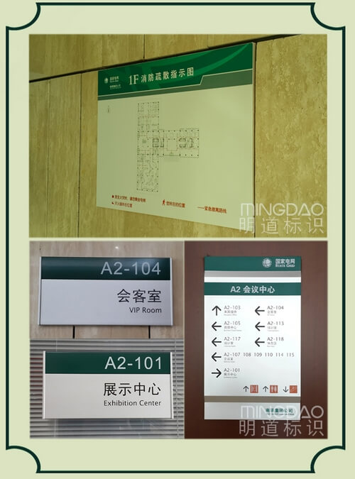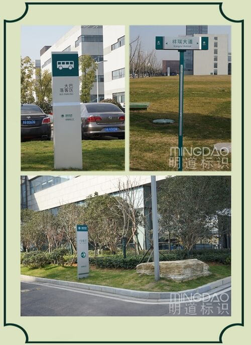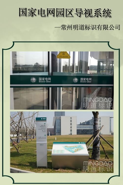 明道標識承接了溧陽市國家電網公司的園區導視系統工程。園區導視系統包括:平面圖牌、多向指示牌、停車場指示立牌、樓層索引牌、道路指示牌、消防疏散指示圖、科室牌門牌等標識標牌">