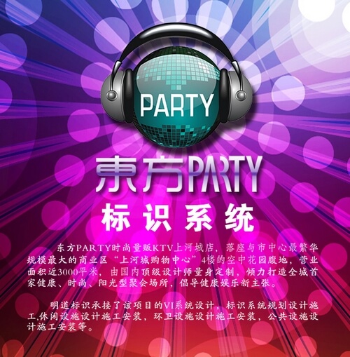 明道標識承接了東方PARTY的整體VI系統設計,標識系統規劃設計施工,休閑設施設計施工安裝,環衛設施設計施工安裝,公共設施設計施工安裝等。