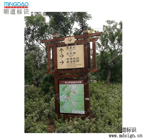 這款產品是明道標識為某景區設計并制作的一款防腐木導視牌,仿古設計搭配木質材料,彰顯了景區古風古韻的特色,同時也很好的融于景區,美觀而自然。