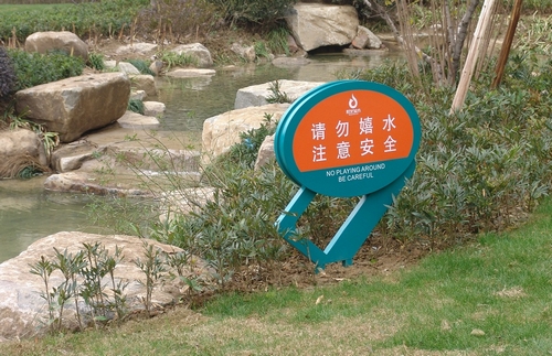 包含的種類非常廣,包括花草牌、請勿戲水牌、室內(nèi)貼墻提示牌,可移動提示牌等。