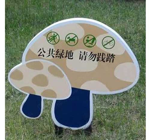 明道標(biāo)識:卡通花草牌_小蘑菇造型花草牌_草坪溫馨提示牌成品展示