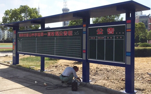 公告欄設計簡約大氣,做工精致,被廣泛用于校區的出入口或操場、活動中心、辦公場所附近。