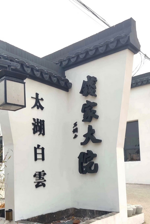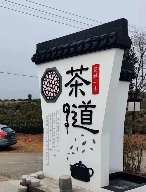 錢家大院的裝修風(fēng)格以江南水鄉(xiāng)的粉墻黛瓦為基調(diào),以新中式為主導(dǎo),loft現(xiàn)代風(fēng)和江南古典民風(fēng)為點綴,園林、石雕、透漏、曲徑、庭院為特色。錢家大院的招牌和背景墻由常州明道標(biāo)識設(shè)計制作,沿用了中式風(fēng)格和茶道的文化的圖文展示,讓錢家大院的介紹醒目直觀的展現(xiàn)。